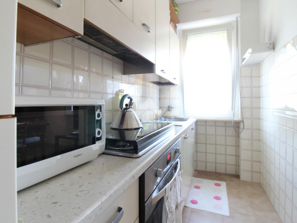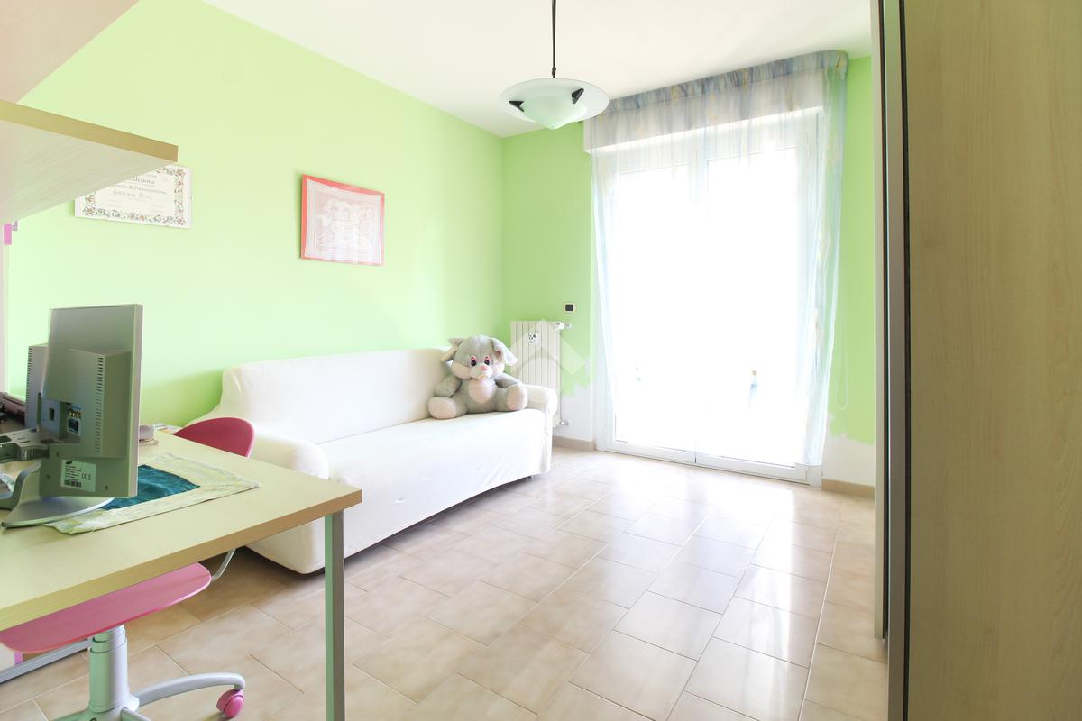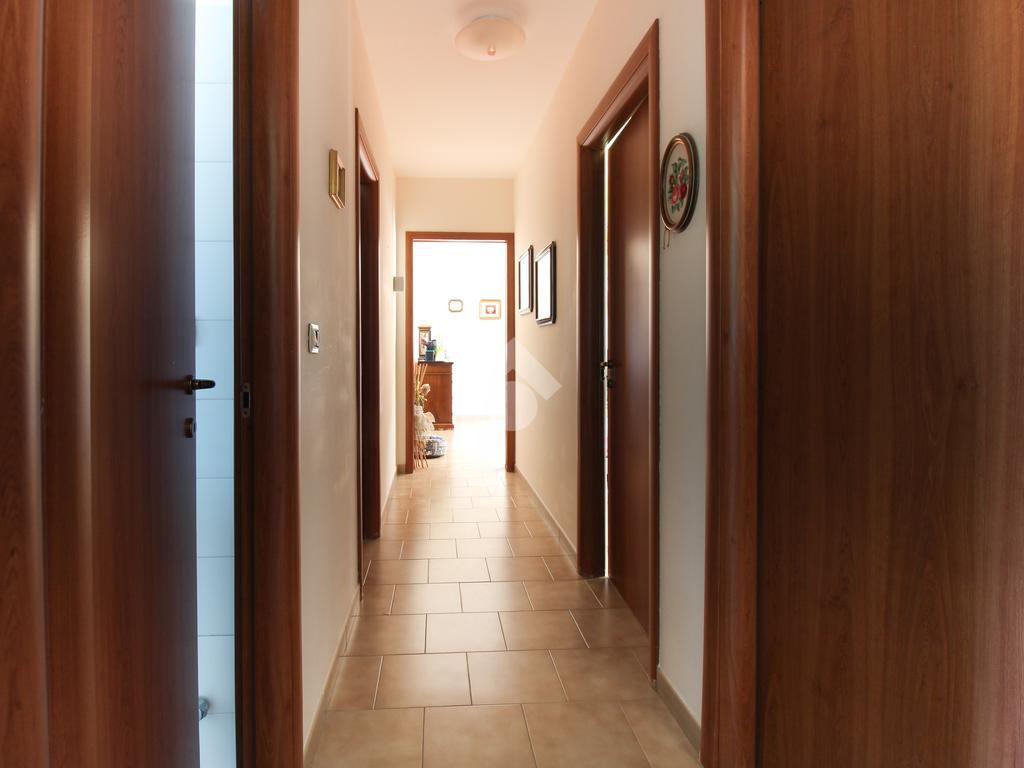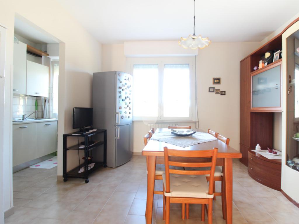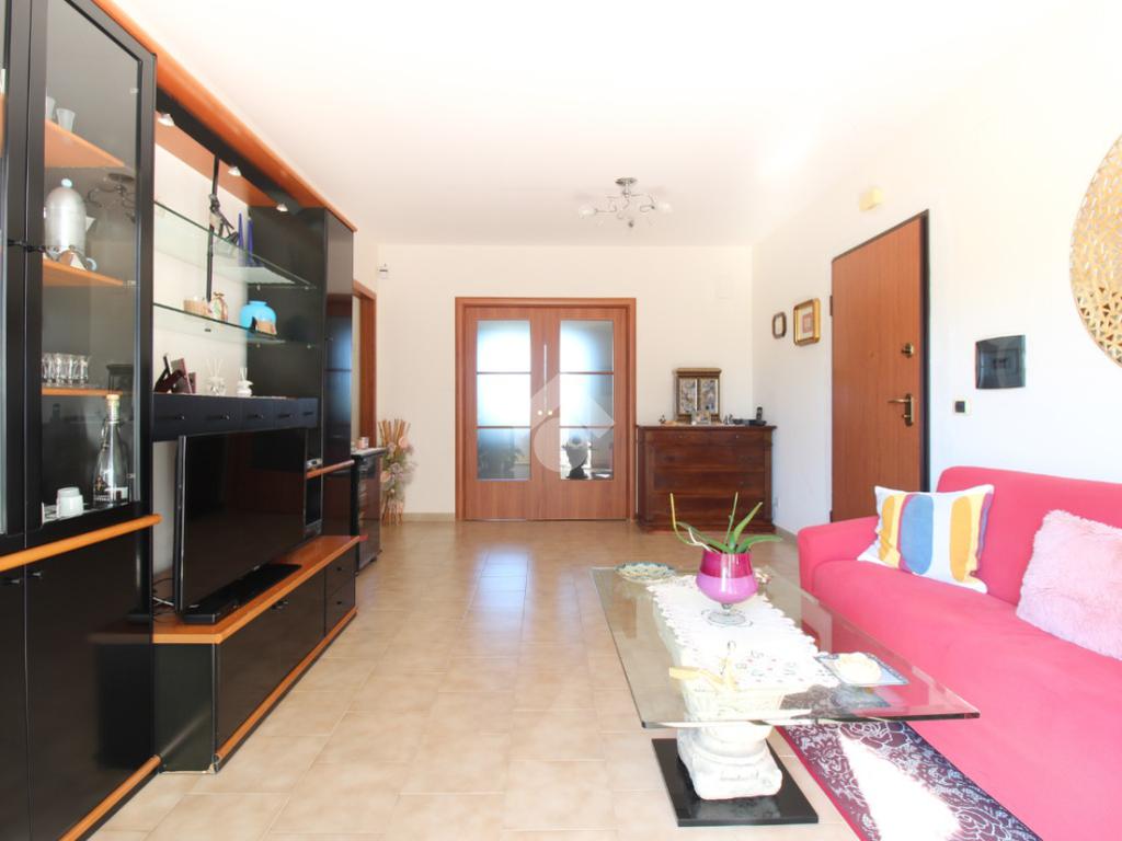 L'appartamento è composto da: ingresso su soggiorno, sala da pranzo con cucinotto, due camere da letto matrimoniali, una cameretta e due bagni finestrati di cui uno con vasca. Dal soggiorno, da una camera matrimoniale e dalla cameretta, si ha accesso ad un balcone esposto ad ovest.