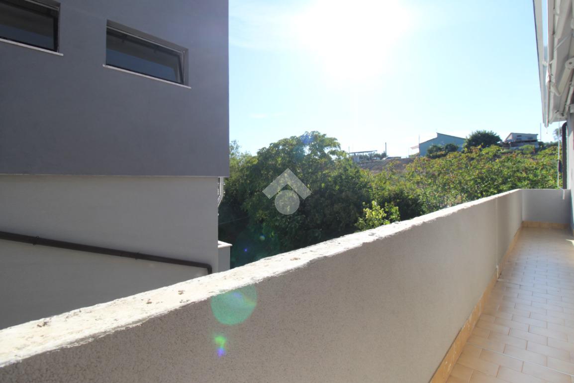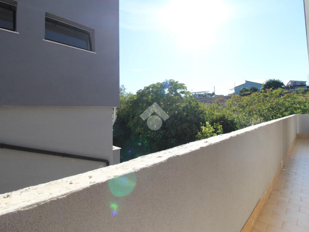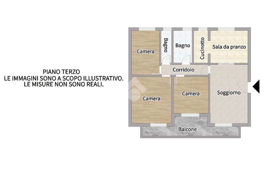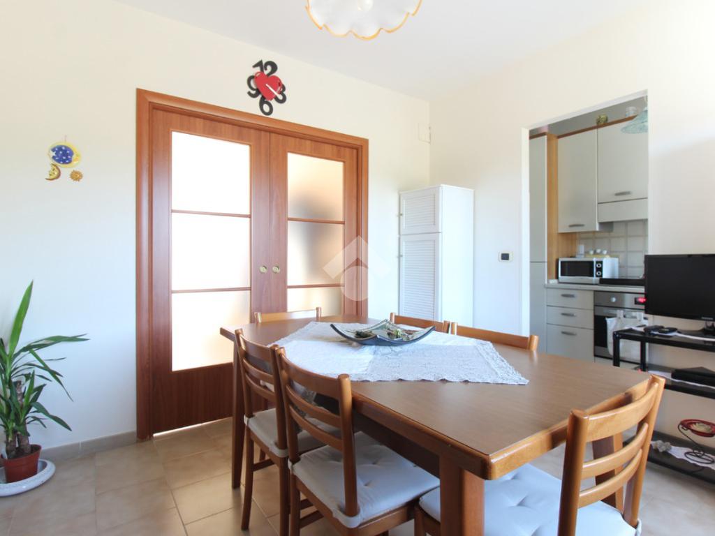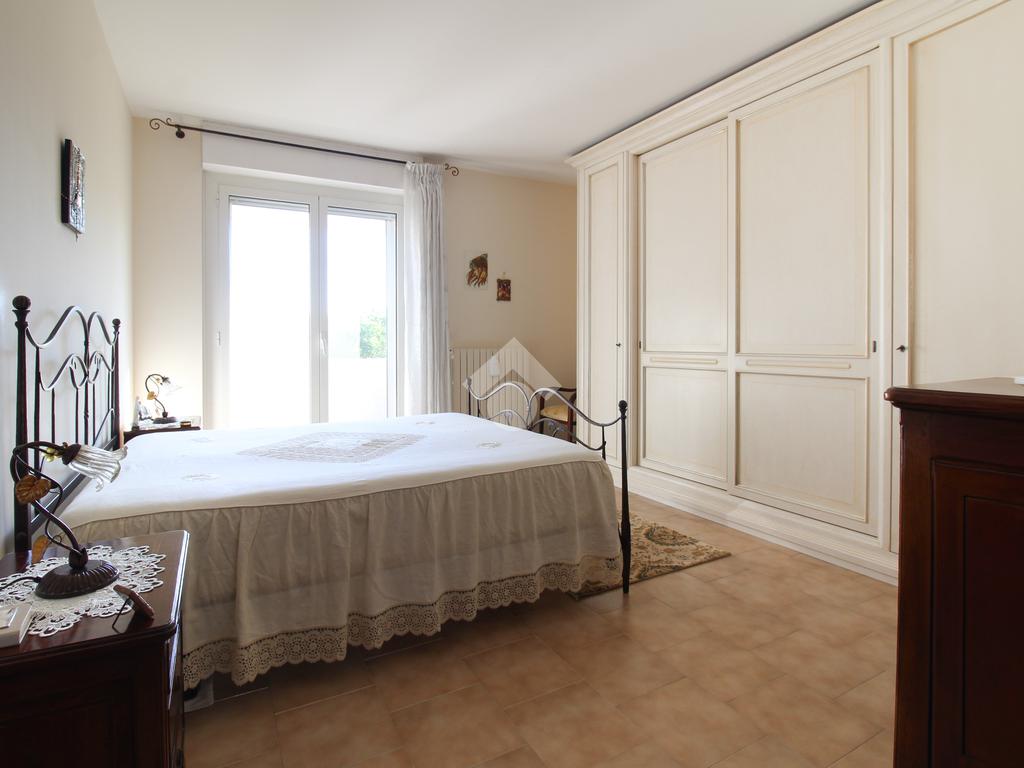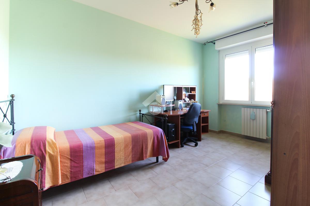 L'appartamento è composto da: ingresso su soggiorno, sala da pranzo con cucinotto, due camere da letto matrimoniali, una cameretta e due bagni finestrati di cui uno con vasca. Dal soggiorno, da una camera matrimoniale e dalla cameretta, si ha accesso ad un balcone esposto ad ovest.