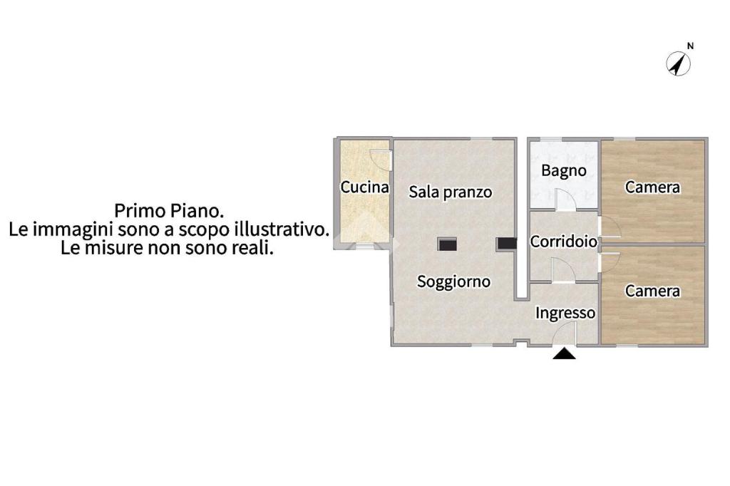 La soluzione si trova al primo ed ultimo piano in un contesto tranquillo di sole 4 unità abitattive; l'appartamento è composto da ingresso, soggiorno e sala da pranzo in ambiente unico, cucina, disimpegno, 2 camere matrimoniali e bagno finestrato con vasca.