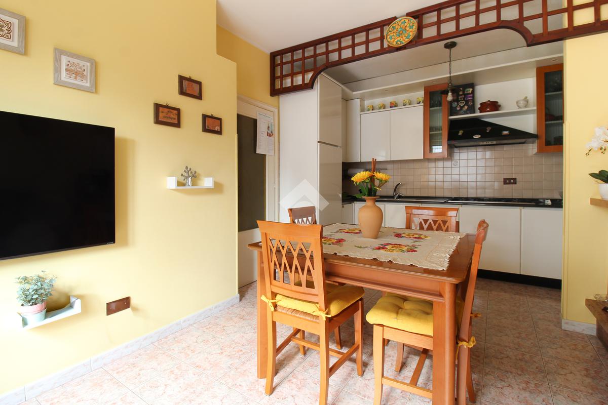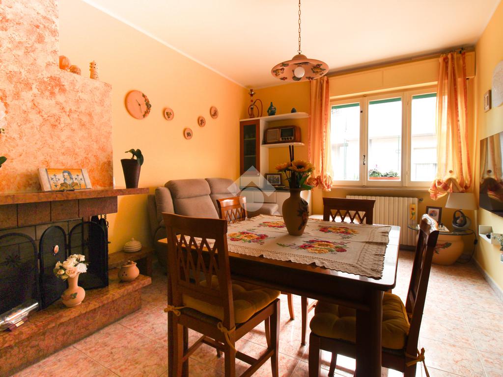 L'appartamento al piano terra è così composto: ingresso, cucina abitabile, 2 camere da letto matrimoniali e bagno finestrato con box doccia. Attraverso una scala esterna posta all'interno della corte, giugniamo al primo piano dove un terrazzo verandato ci accompagna all'ingresso del secondo appartamento così strutturato: cucina e soggiorno con camino in un'unico ambiente, disimpegno, 2 camere matrimoniali, stanza adibita a studio e bagno finestrato con vasca.