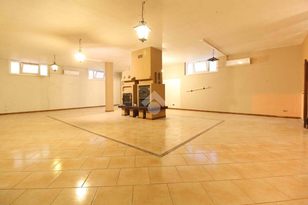 Il cuore pulsante della villa è la splendida taverna, caratterizzata da un affascinante camino centrale, che dona calore e charme all'ambiente, e da una moderna cucina con penisola, perfetta per conviviali pranzi e cene in compagnia.